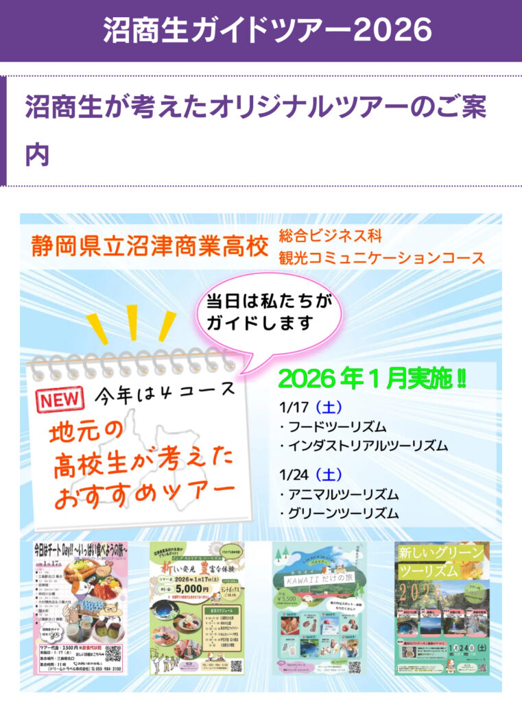 静岡県立沼津商業高校で観光について学んでいる生徒たちが企画したツアーを実施いたします。